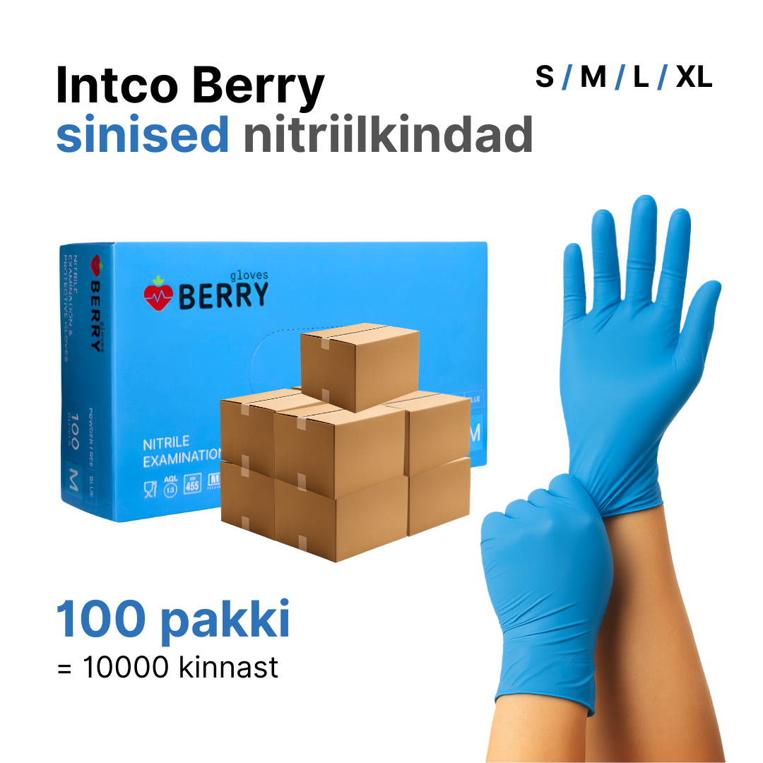 Berry sinised nitriilkindad on valmistatud kvaliteetsest lateksivabast materjalist, mis tagab kindla kaitse nii professionaalses töös kui ka igapäevastes kodustes tegemistes. Pulbrivabad kindad on nahasõbralikud, sobivad ka tundlikule nahale.